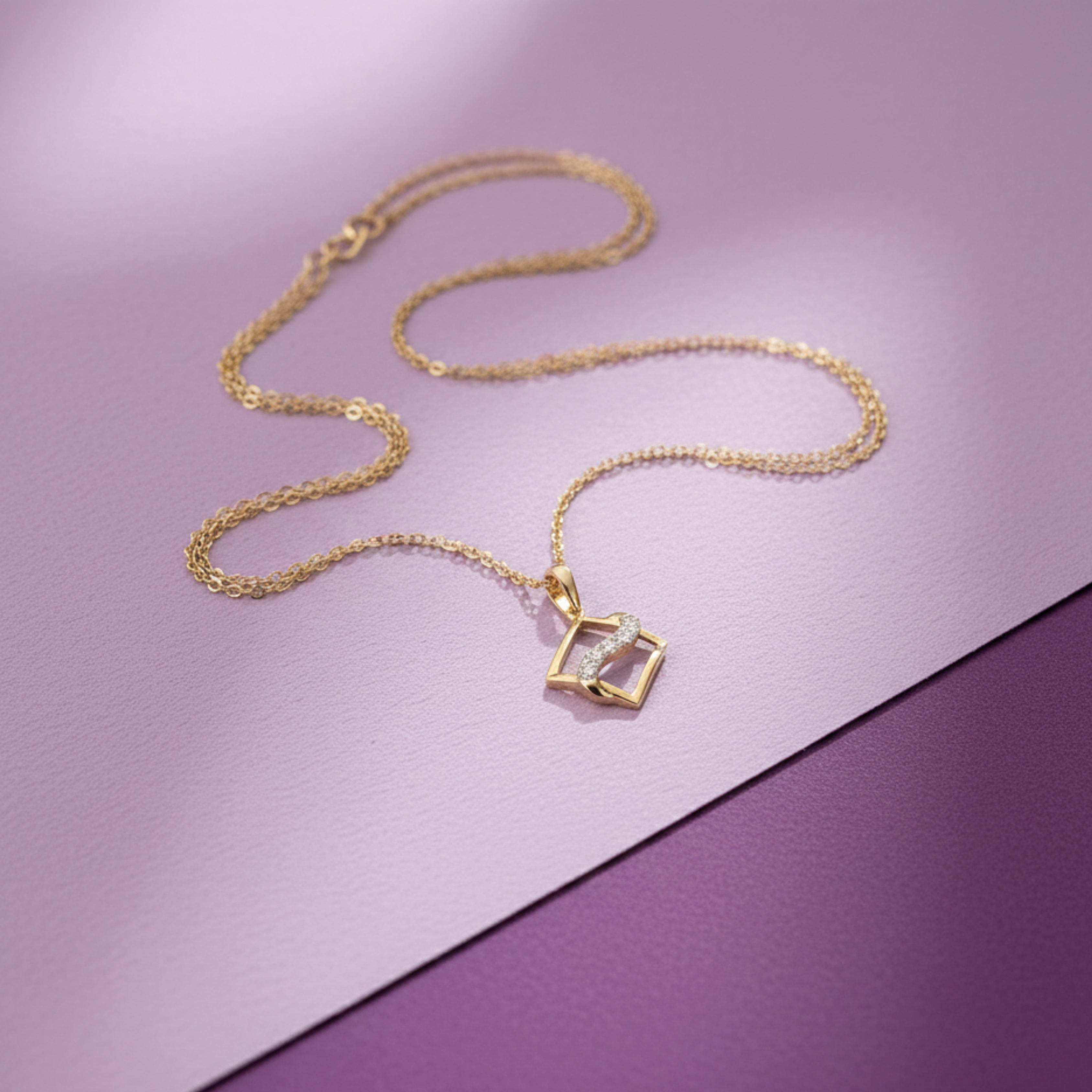 This Square Wavy Diamond Pendant has sleek, geometric design that beautifully showcases the brilliance of the diamond, making it a striking statement piece that adds elegance to any outfit.
